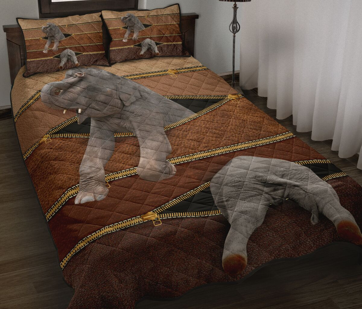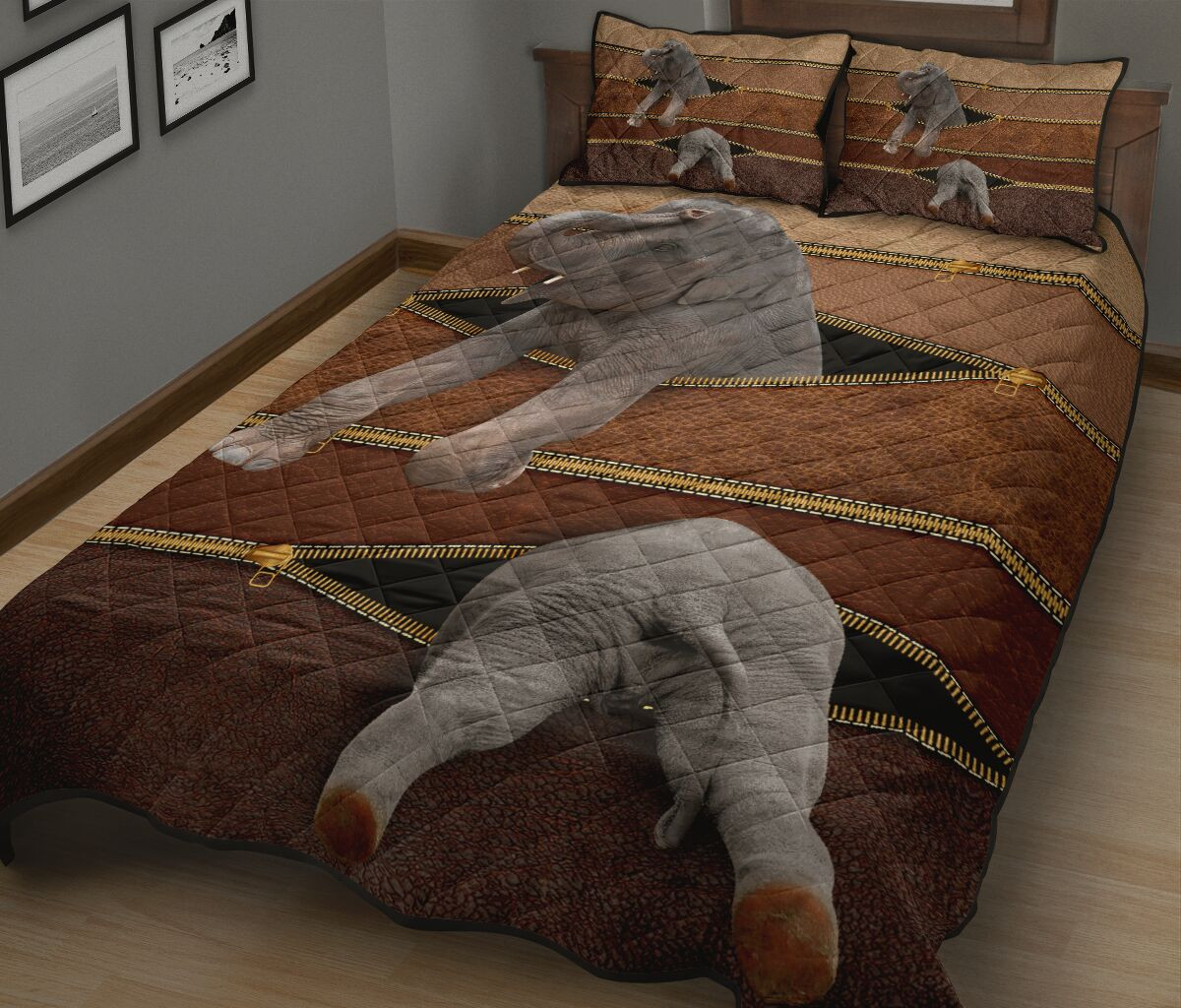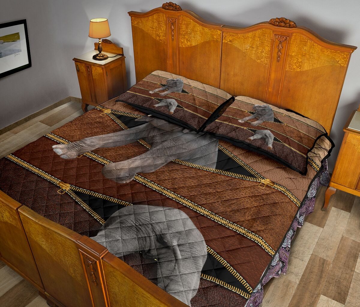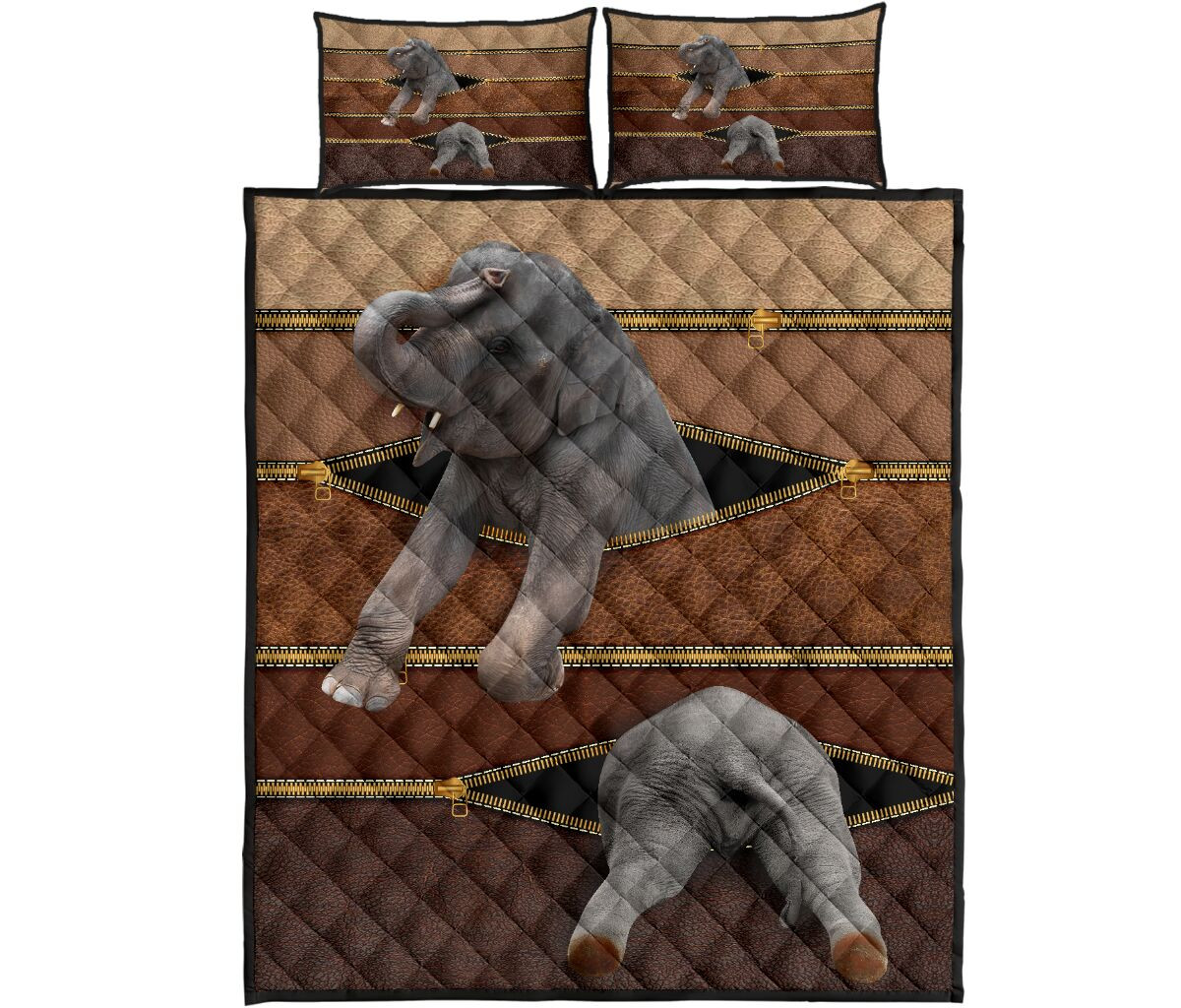 Elephant Zipper Leather Quilt Bed Set